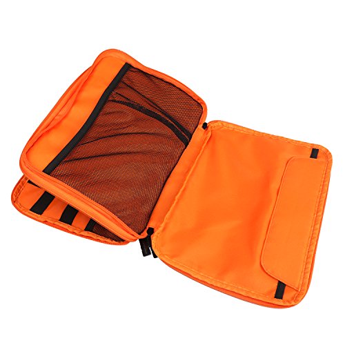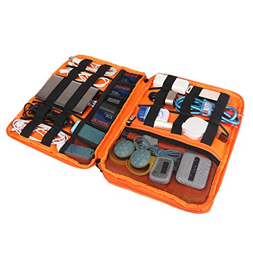 BUBM Universal Travel Gear Organiser, Ultra High Capacity Electronics Accessories Bag for iPad, USB Cables, Battery, Hard Drive, Memory Cards and More, Double Layer with Zipper Closure(Large, Grey and Orange)