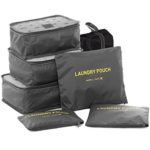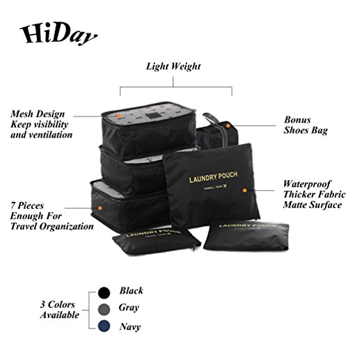 HiDay 7 Set Travel Cube System – 3 Packing Cubes – 3 Pouches – 1 Premium Shoes Bag – Waterproof Fabric