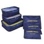 IPLUS 6 sets Travel Cube System Travel Organisers Packing Cubes Laundry Bag Luggage Compression Pouches (Navy Circle)